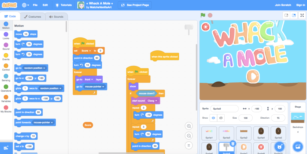 I’ll be the first to admit that coding a functional video game is currently above my head, but being able to see the blocks of code used and how they interact is a real game changer. Pun intended. Scratch makes it really easy to see how other users created their games and projects, and I see this as a huge benefit for students and teachers.